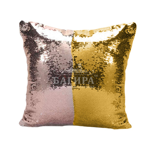 Чехол на подушку с двухцветными пайетками Пудровый/Золото