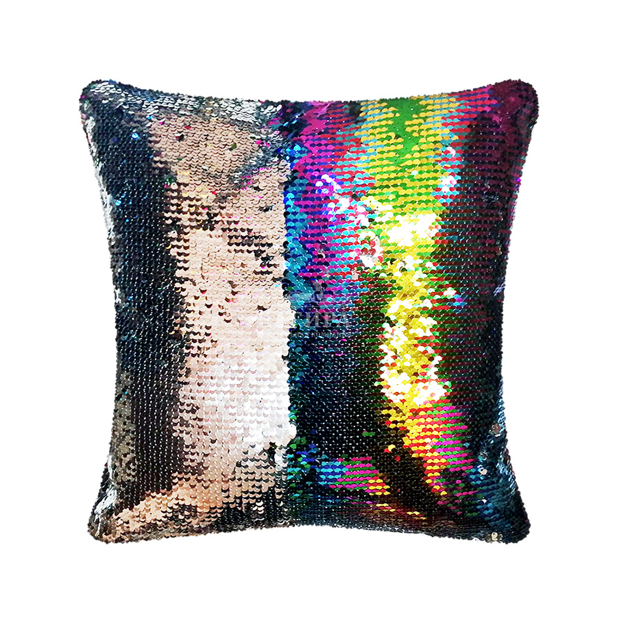 Чехол на подушку с двухцветными пайетками Радужный/Серебро