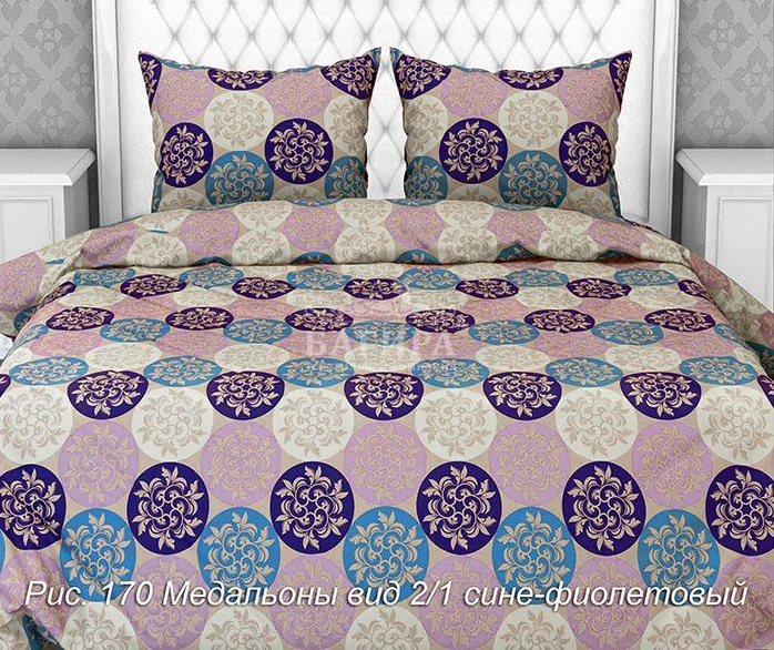 Постельное бельё "Бязь 125 г/м2" Медальоны вид 2/1 сине-фиолетовые