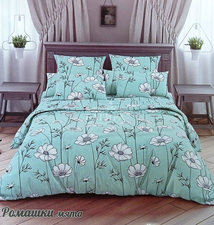 Постельное бельё "Бязь 125 г/м2" Ромашки мята