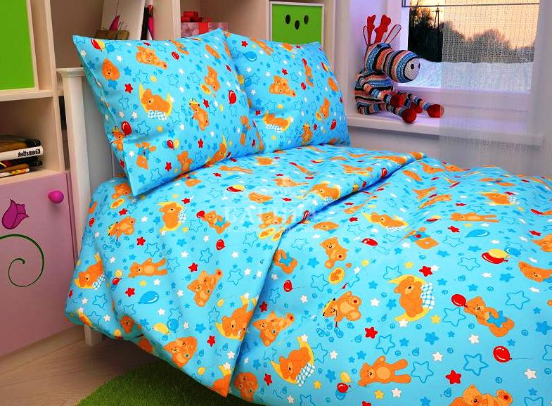 Постельное бельё "Бязь ГОСТ, 140 г/м2" (Детство) Мишки голубой (вид 1)