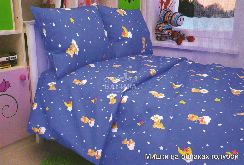 Постельное бельё "Бязь ГОСТ, 140 г/м2" (Детство) Мишки на облаках голубой