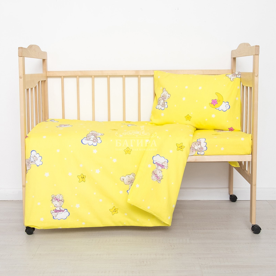 Постельное бельё "Бязь ГОСТ, 140 г/м2" (Детство) Мишки на облаках жёлтый (вид 2)