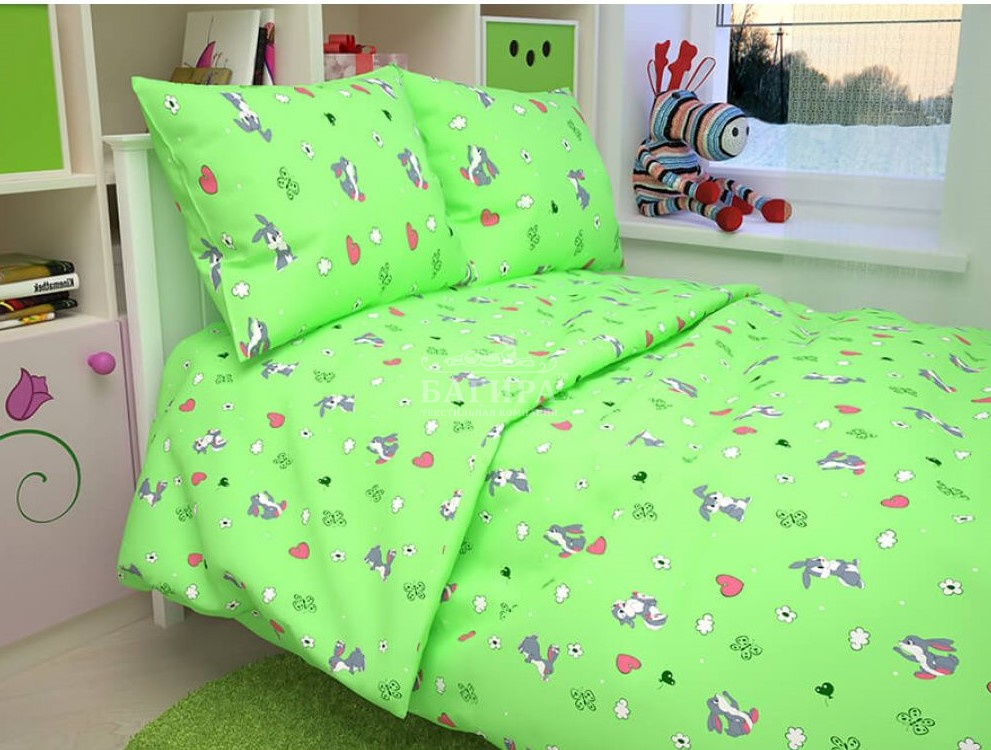 Постельное бельё "Бязь ГОСТ, 140 г/м2" (Детство) Зайки серые зеленый