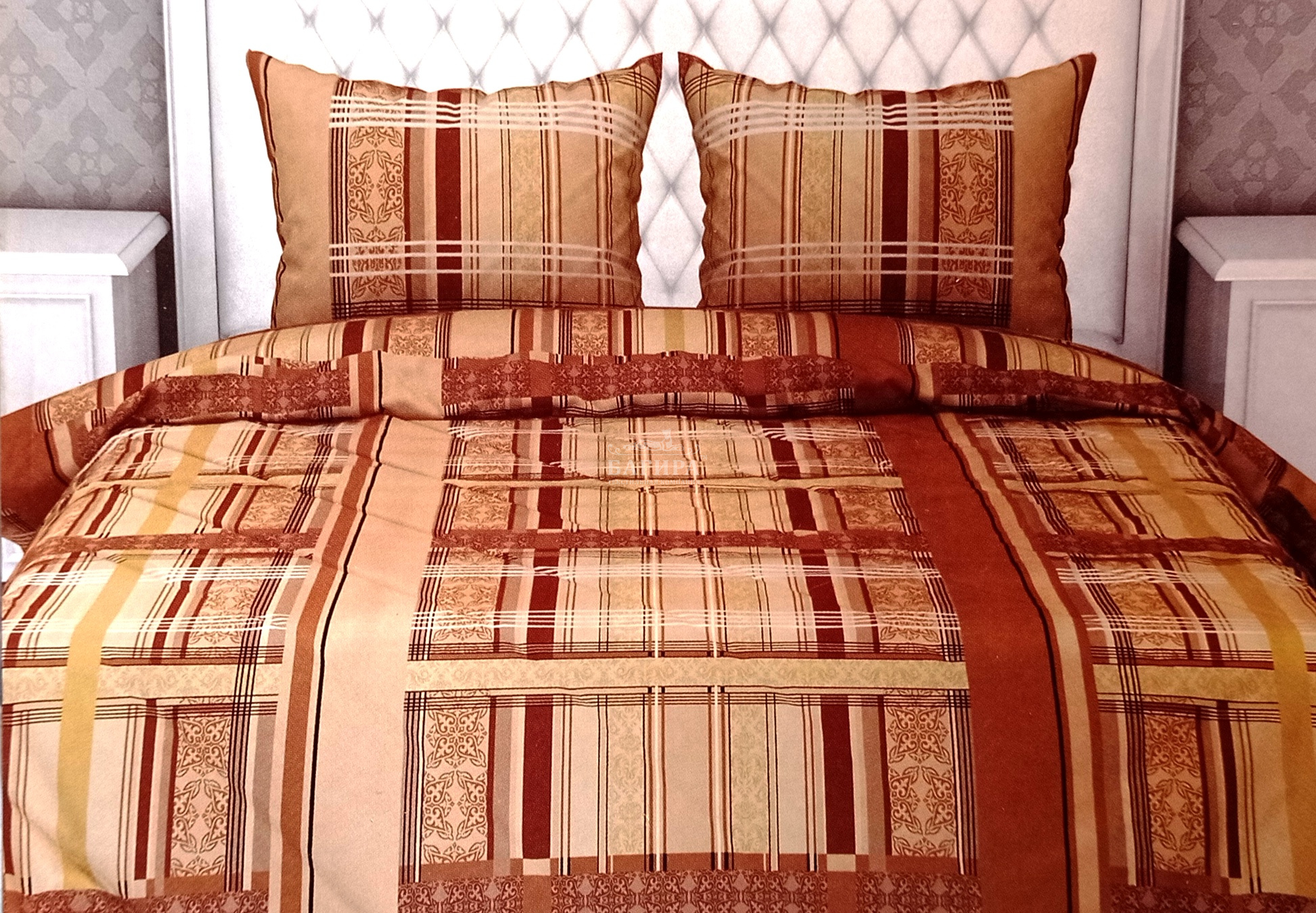 Постельное бельё "Бязь ГОСТ, 140 г/м2" Геометрия коричневый"