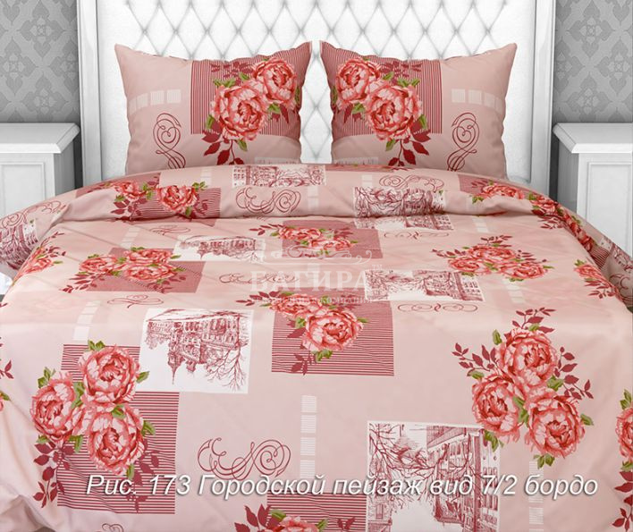 Постельное бельё "Бязь ГОСТ, 140 г/м2" Городской пейзаж вид 7/2 бордо