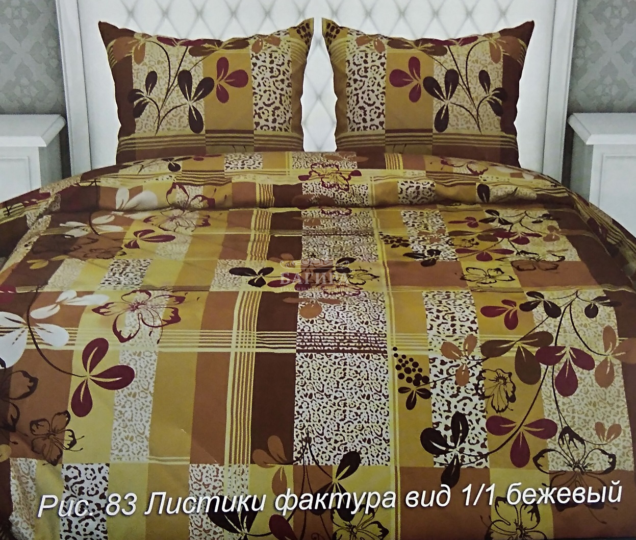 Постельное бельё "Бязь ГОСТ, 140 г/м2" Листики вид 1 бежевый