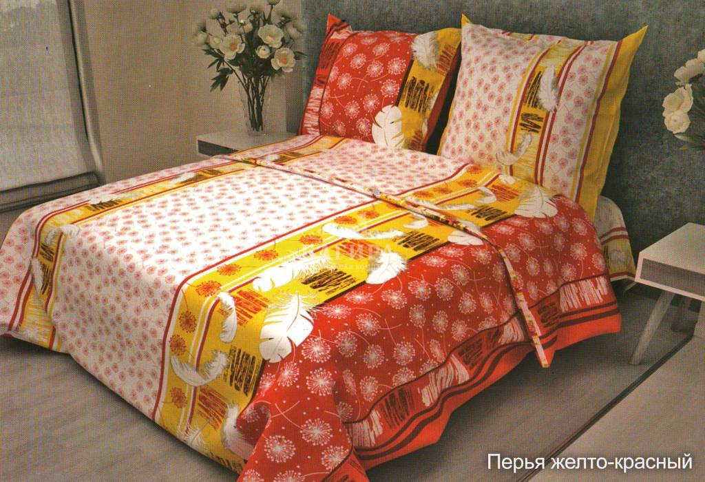 Постельное бельё "Бязь ГОСТ, 140 г/м2" Перья желто-красный