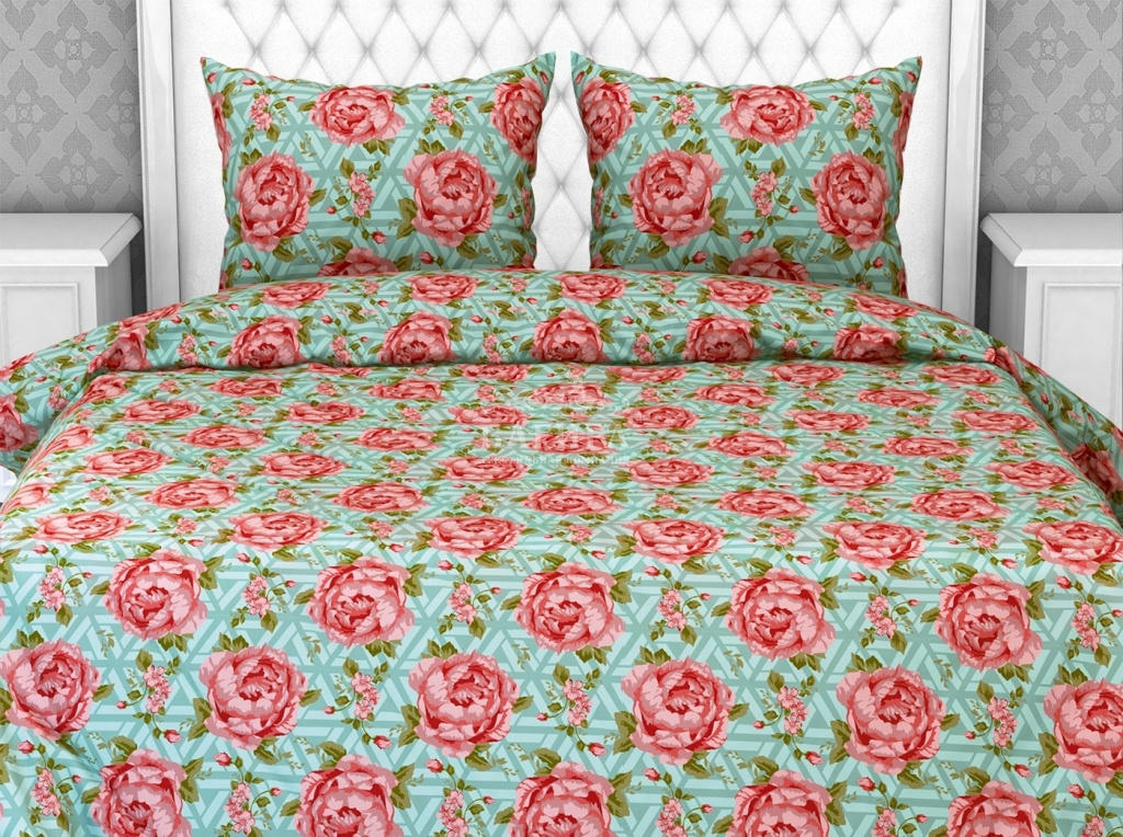 Постельное бельё "Бязь ГОСТ, 140 г/м2" Пионы вид 4/1 бирюзовый