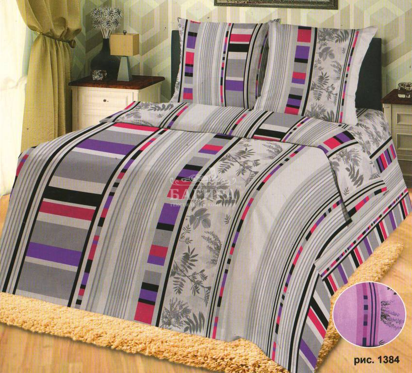 Постельное бельё "Бязь ГОСТ, 140 г/м2" Полосы на фиолетовом
