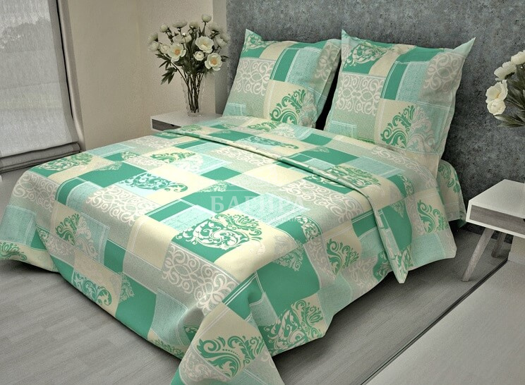 Постельное бельё "Бязь ГОСТ, 140 г/м2 " Вензель бирюза