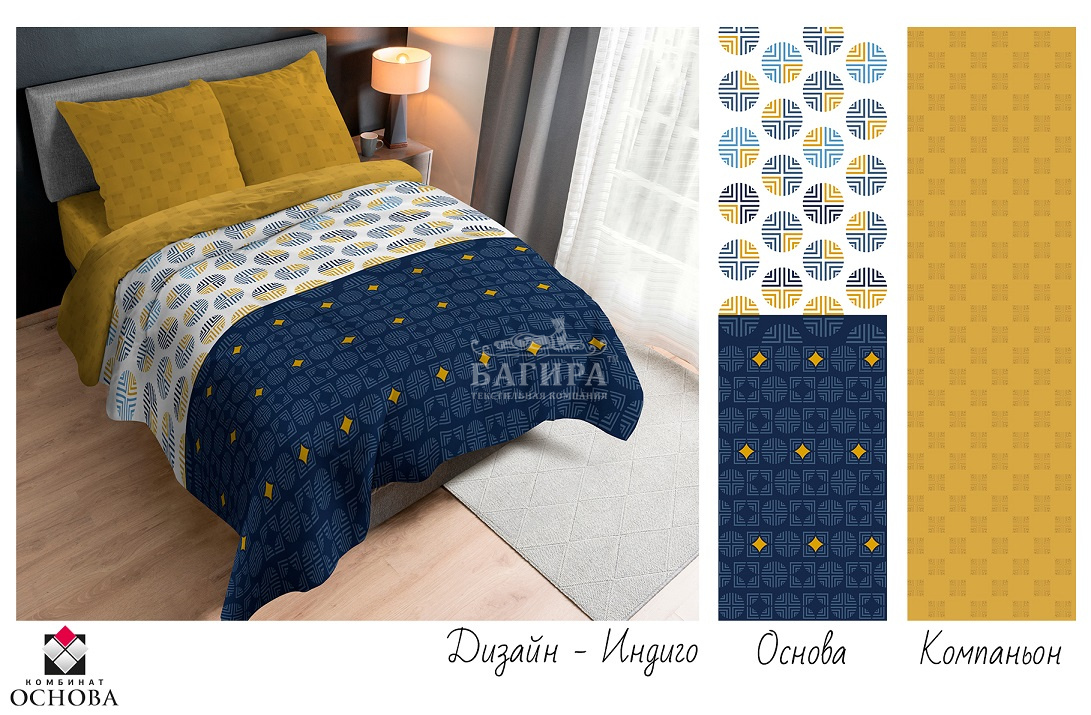 Постельное бельё "Перкаль" Индиго