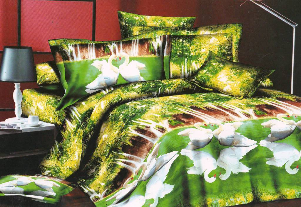 Постельное бельё "Полисатин 3D" Лебеди на пруду