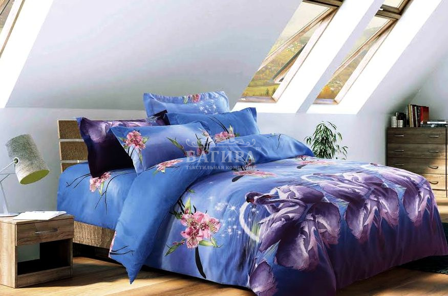 Постельное бельё "Полисатин 3D" Пара лебедей
