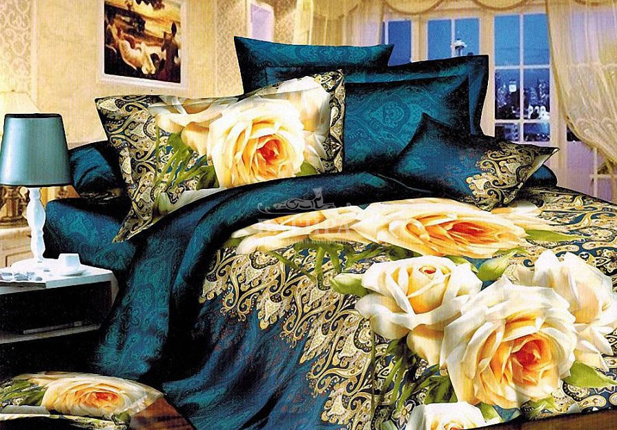 Постельное бельё "Полисатин 3D" Роза в орнаменте