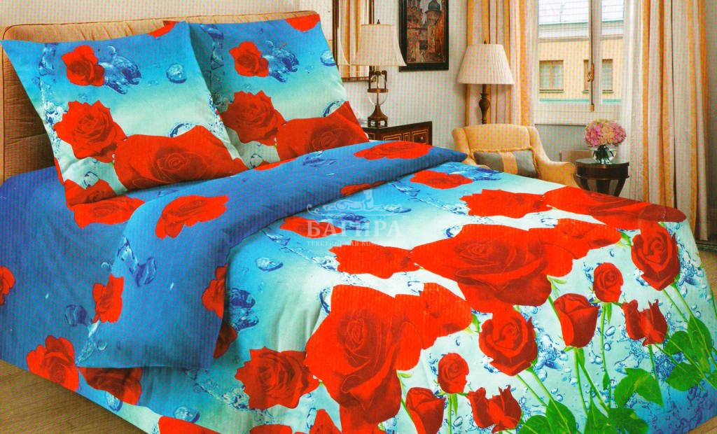 Постельное бельё "Полисатин 3D" Роза в синеве