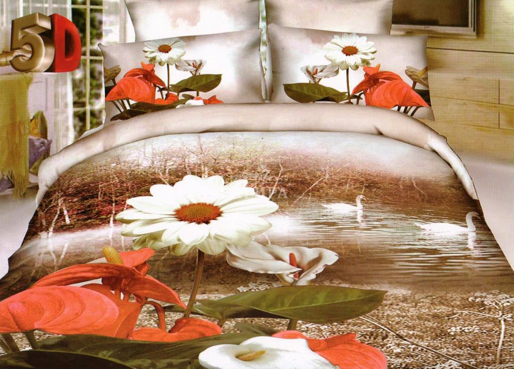Постельное бельё "Полисатин 3D" Цветы на пруду 2