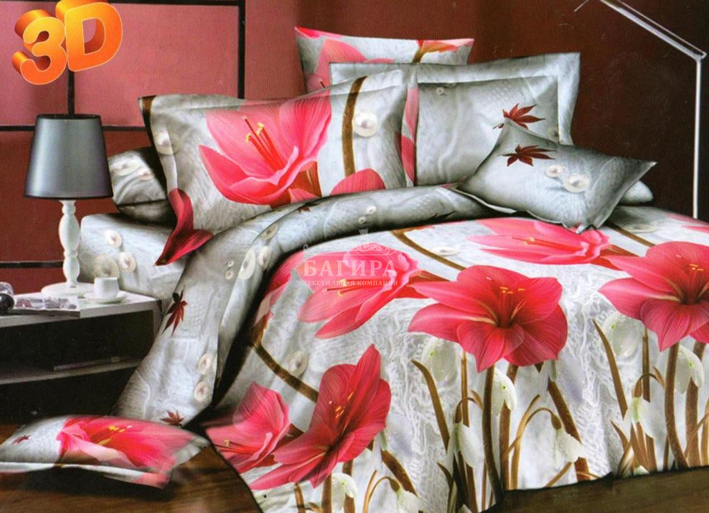 Постельное бельё "Полисатин 3D" Цветы в кружевах