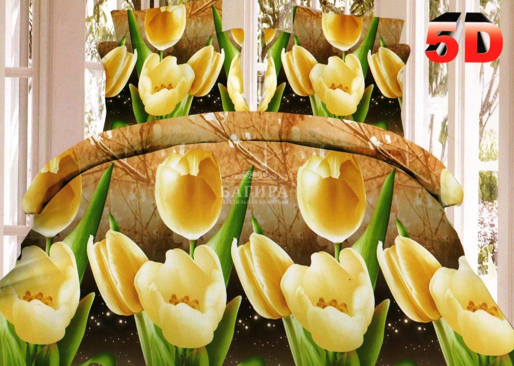 Постельное бельё "Полисатин 3D" Желтые тюльпаны