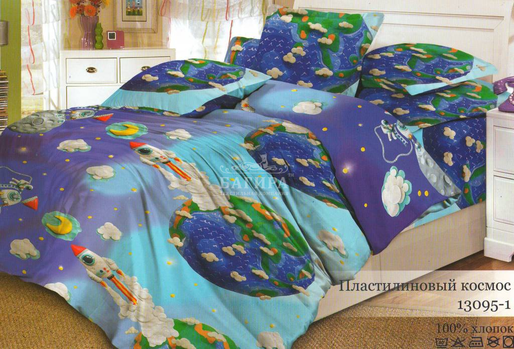 Постельное бельё "Поплин 3D" (Детство) Пластилиновый космос