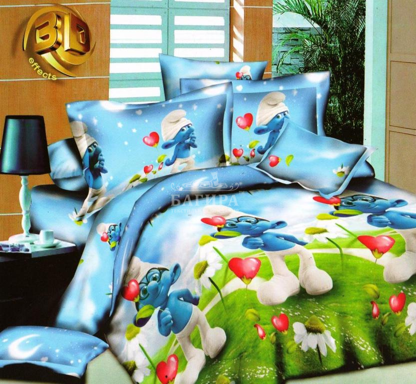 Постельное бельё "Поплин 3D" (Детство) Смурфики