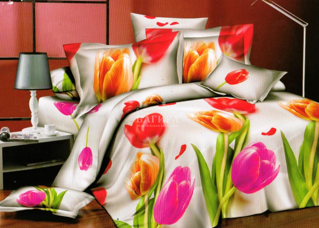 Постельное бельё "Поплин 3D" Ассорти тюльпанов