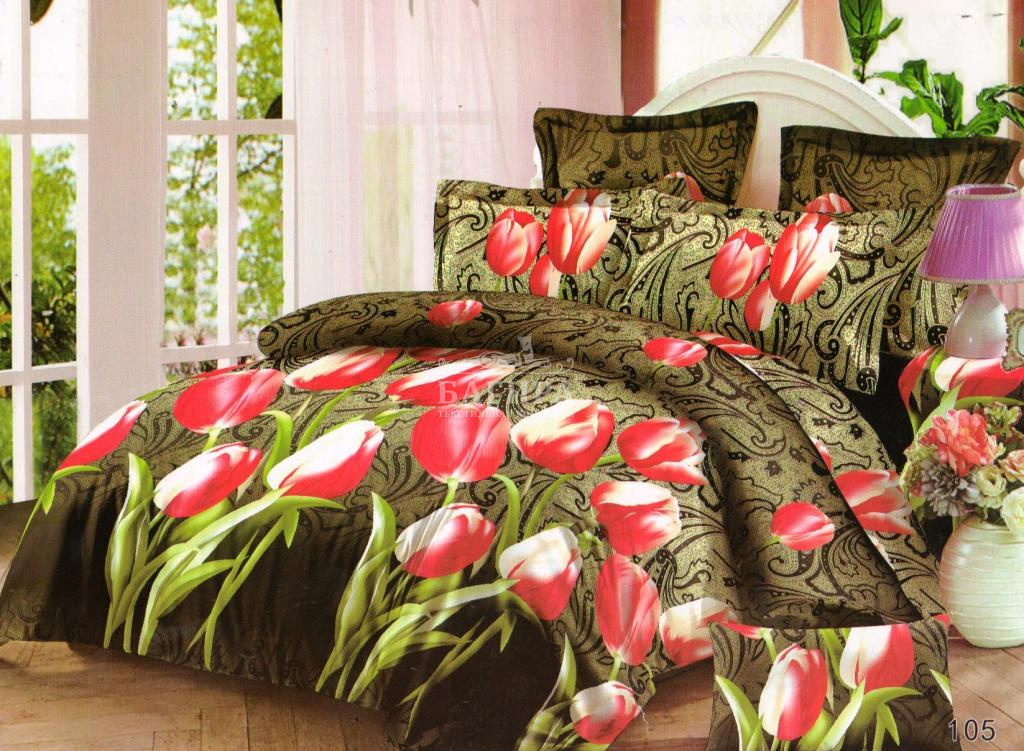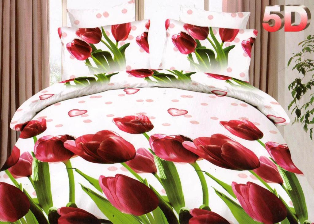 Постельное бельё "Поплин 3D" Красные тюльпаны