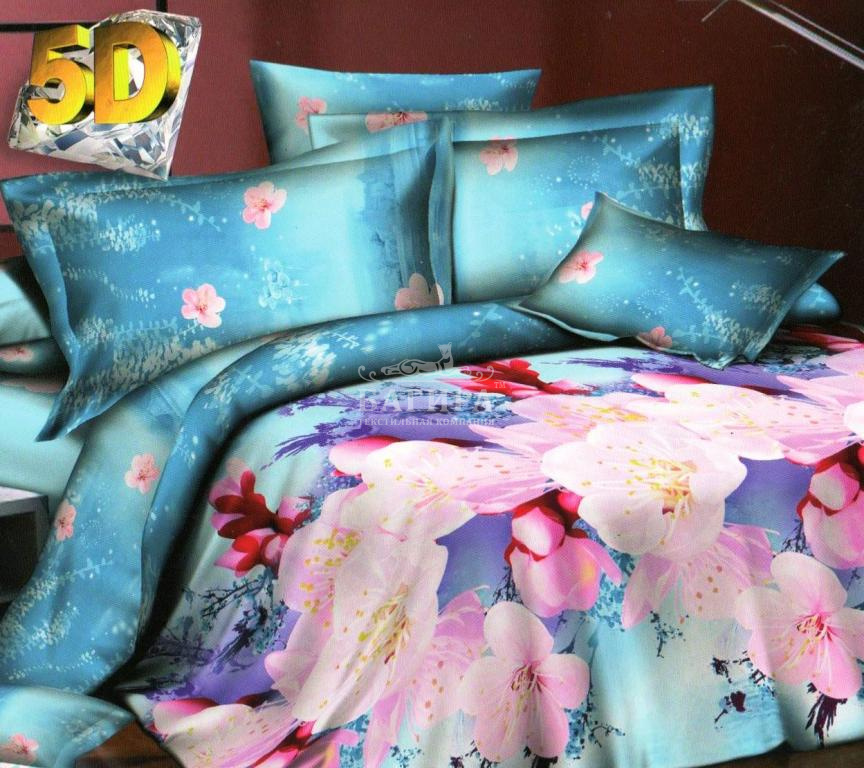 Постельное бельё "Поплин 3D" Орхидея на голубом