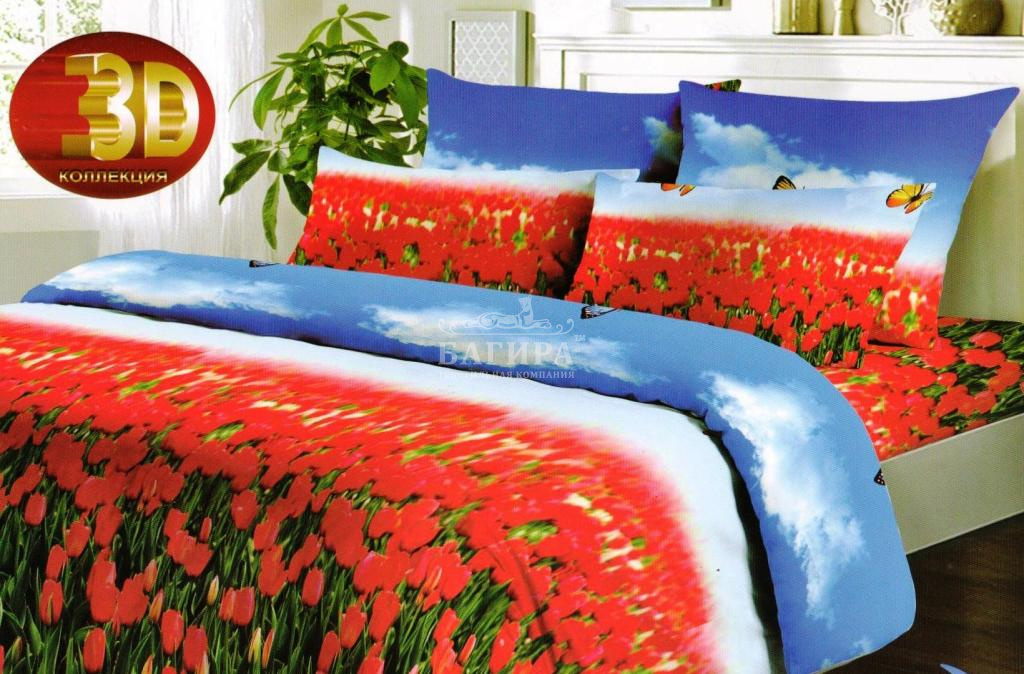 Постельное бельё "Поплин 3D" Поле красных тюльпанов
