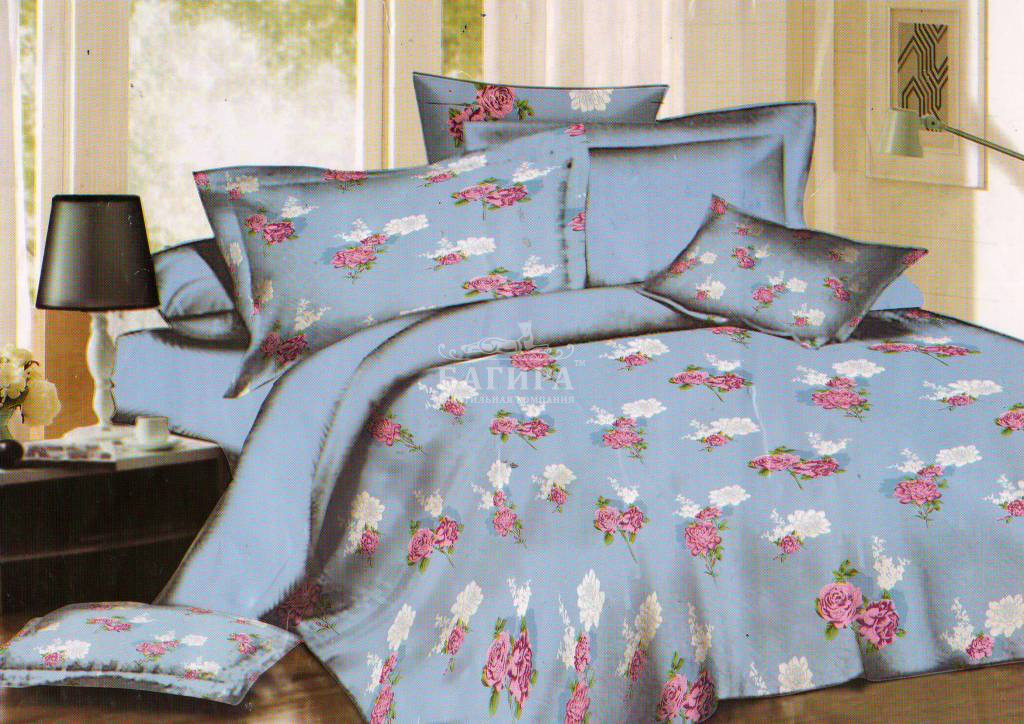 Постельное бельё "Поплин 3D" Цветы на голубом