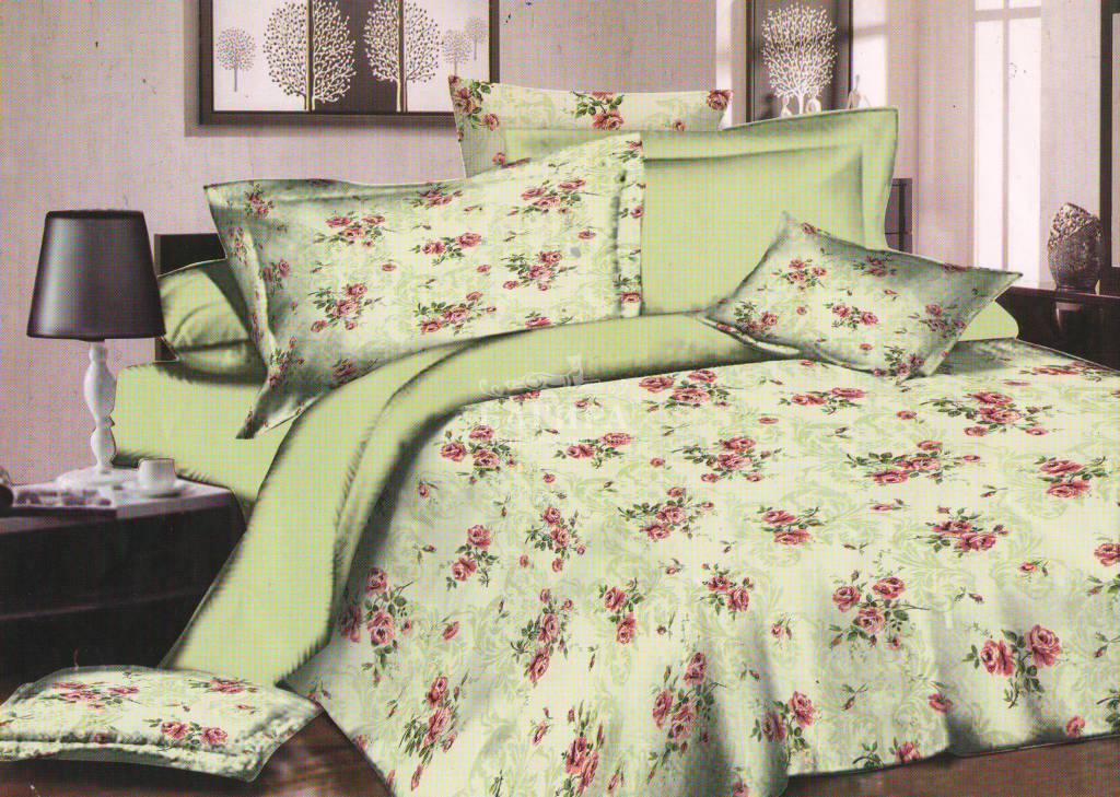 Постельное бельё "Поплин 3D" Цветы на зеленом