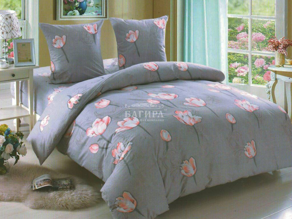 Постельное бельё "Поплин 3D" Тюльпаны на сером