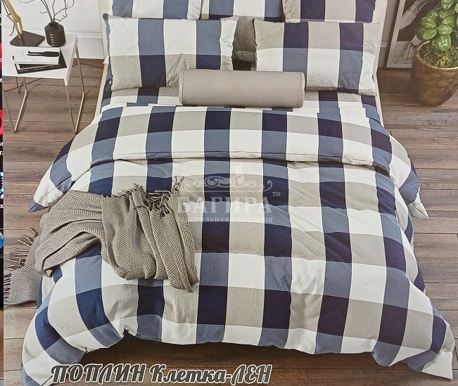 Постельное бельё "Поплин Премиум" Клетка - лён