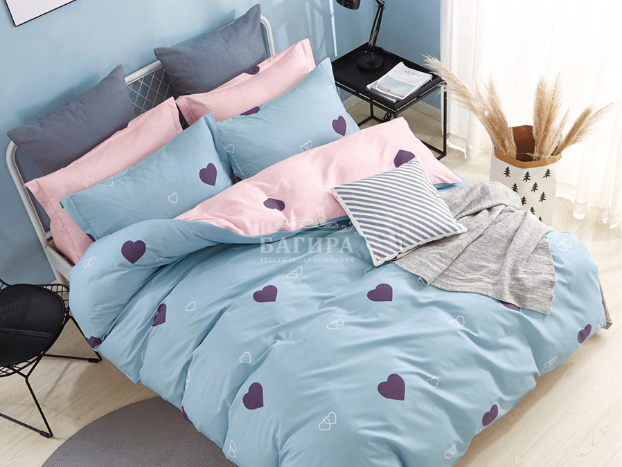Комплекты выполнены из двух тканей-компаньонов. Из основной ткани: одна сторона пододеяльника, наволочки 70х70 см, одна сторона наволочек 50х70 см. Из ткани-компаньона: вторая сторона пододеяльника, простыня, одна сторона наволочек 50х70 см.