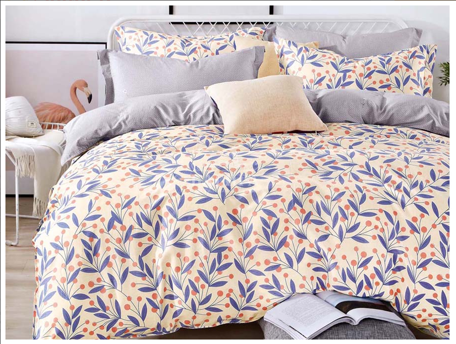 Комплекты выполнены из двух тканей-компаньонов. Из основной ткани: одна сторона пододеяльника, наволочки 70х70 см, одна сторона наволочек 50х70 см. Из ткани-компаньона: вторая сторона пододеяльника, простыня, одна сторона наволочек 50х70 см.