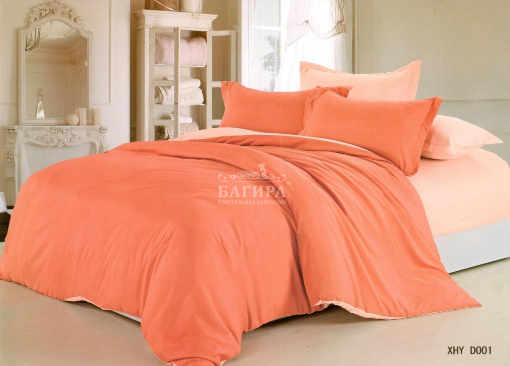 Постельное бельё "ЭКО-сатин 5D" Персик /с компаньоном/