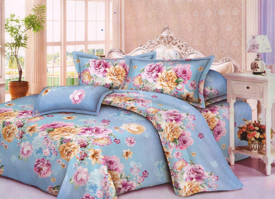 Постельное бельё "ЭКО-сатин 5D" Пионы на голубом