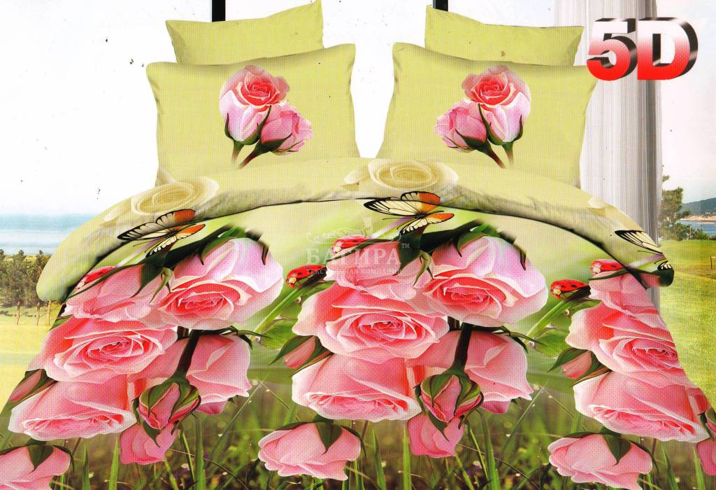 Постельное бельё "ЭКО-сатин 5D" Розовый сад 2