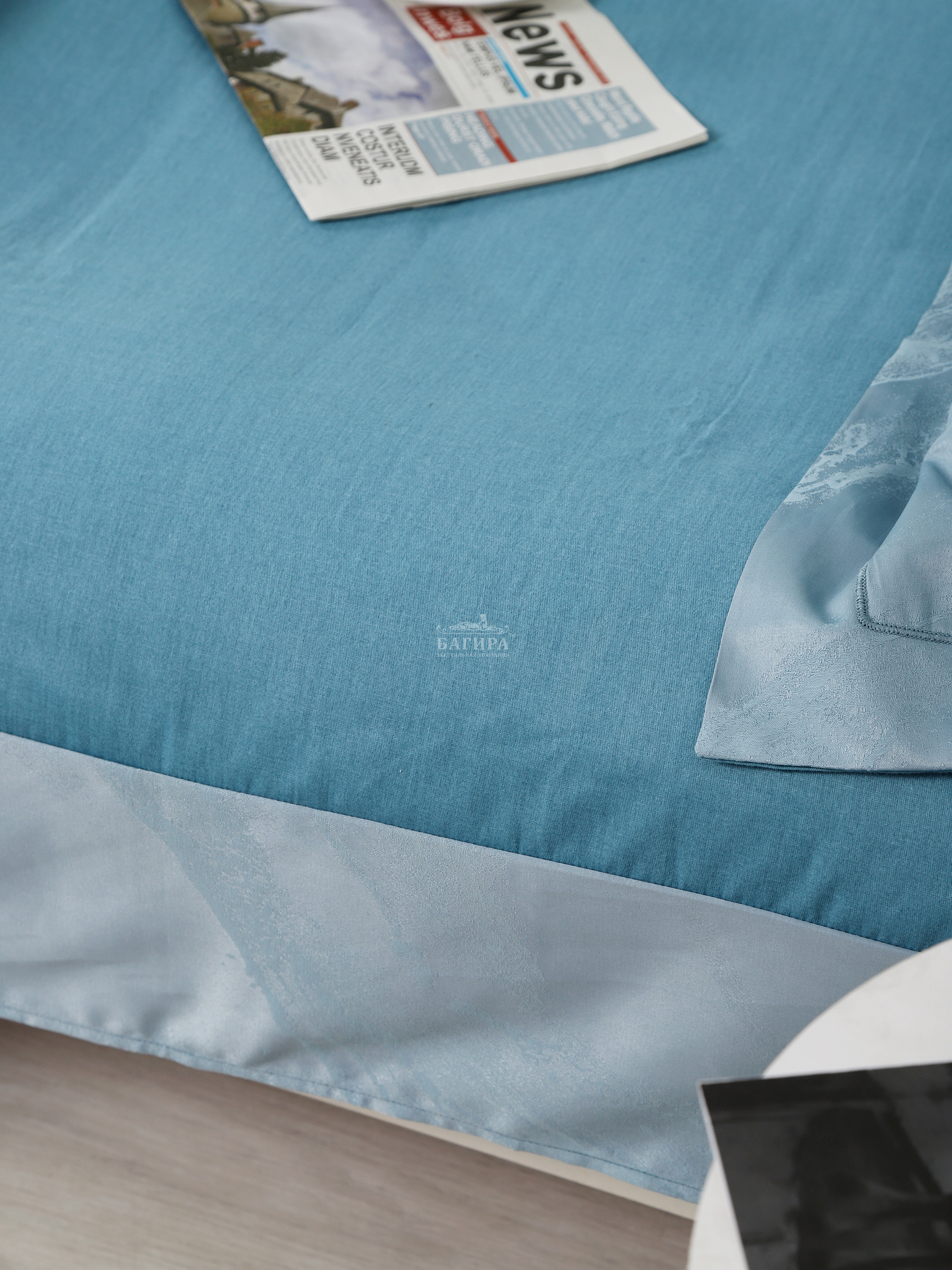 Пододеяльник 200х220 см: верх- жаккард (50% хл., 50% п/э), низ- сатин однотонный (100% хл.).
