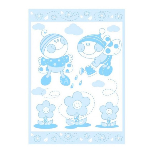 Одеяло Байковое "Букашки" бело-ярк.голубое
