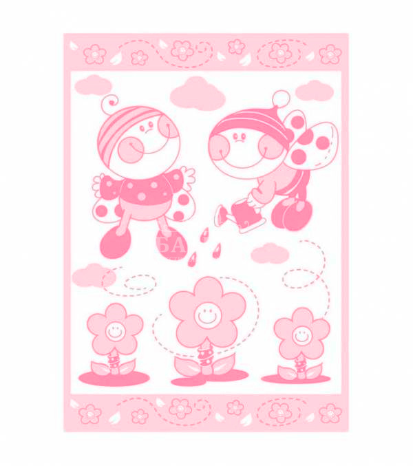 Одеяло Байковое "Букашки" бело-ярк.розовое