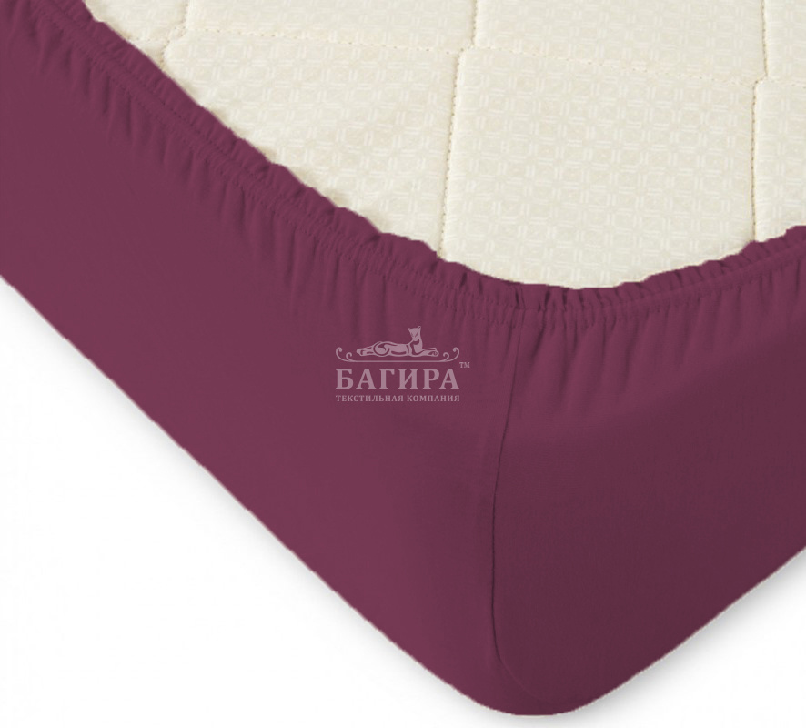 Простыня Трикотажная на резинке Бордо