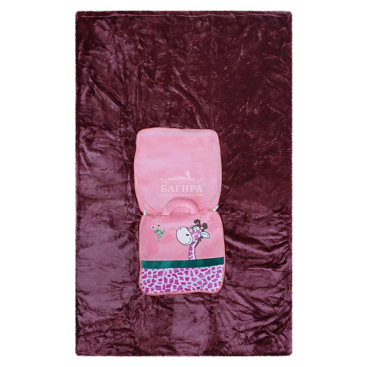 Плед-cумка "Детский" Жирафик Розовый
