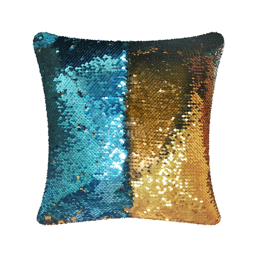 Подушка "Декоративная с пайетками" Бирюза/Золотой