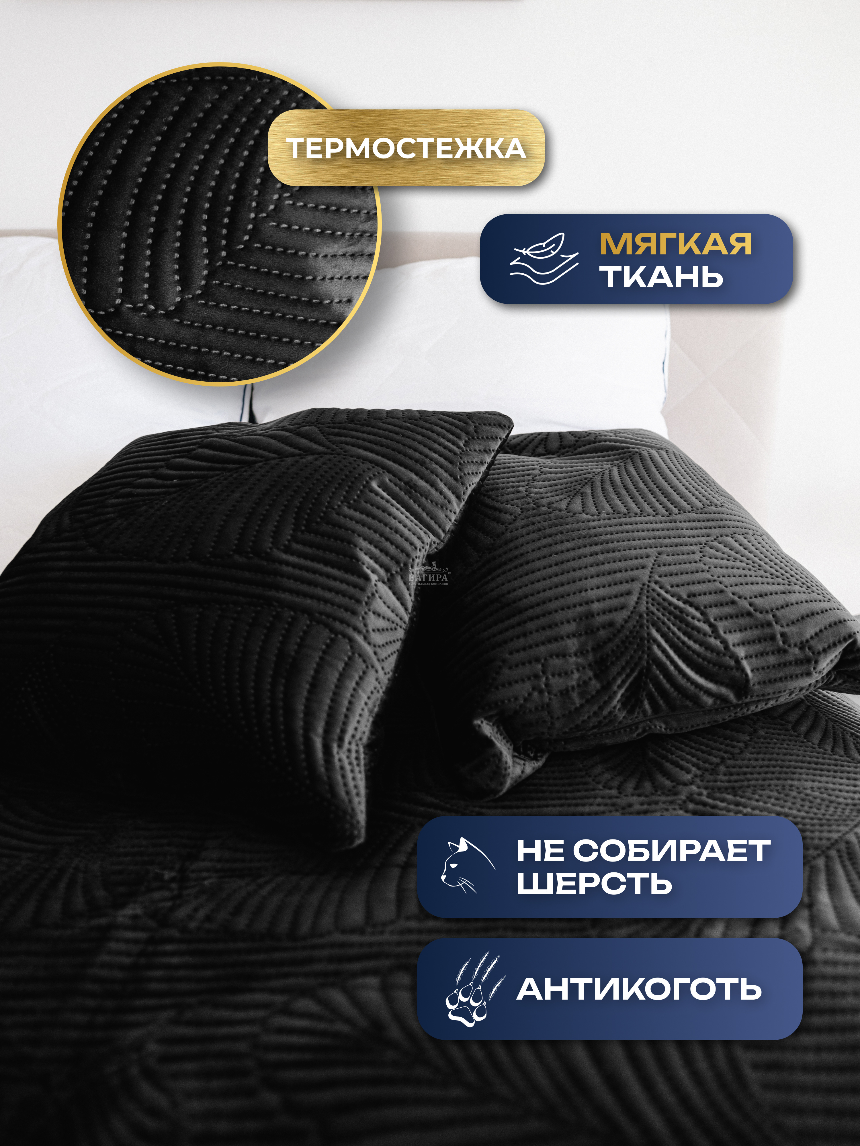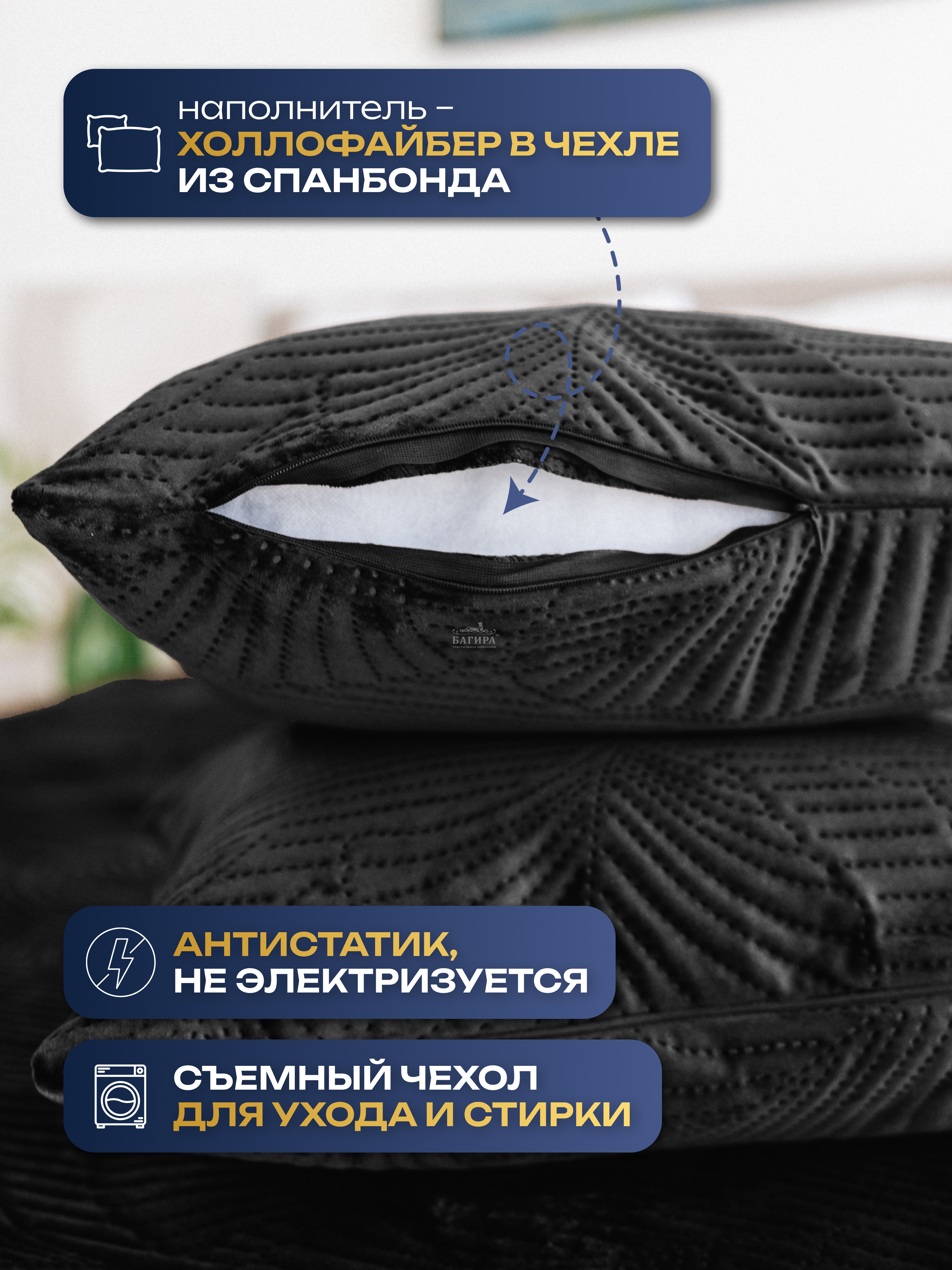Съемный чехол на молнии; декоративная стежка – рисунок «папоротник»; не электризуется; не собирает шерсть животных.