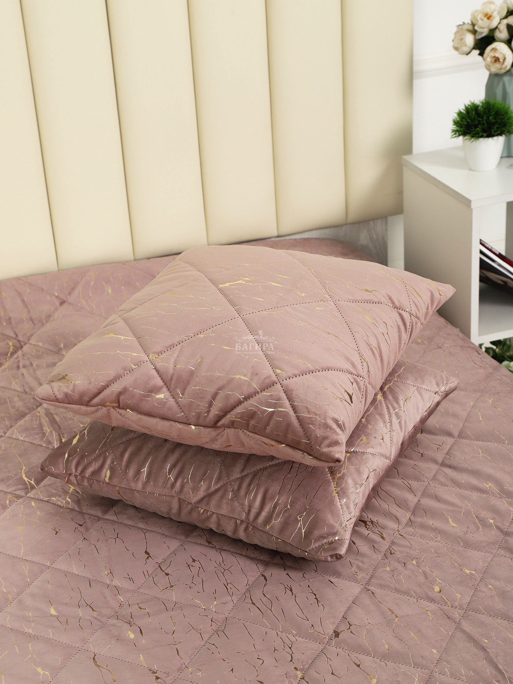 Подушка Бархат мрамор"LUXURY" Пудра