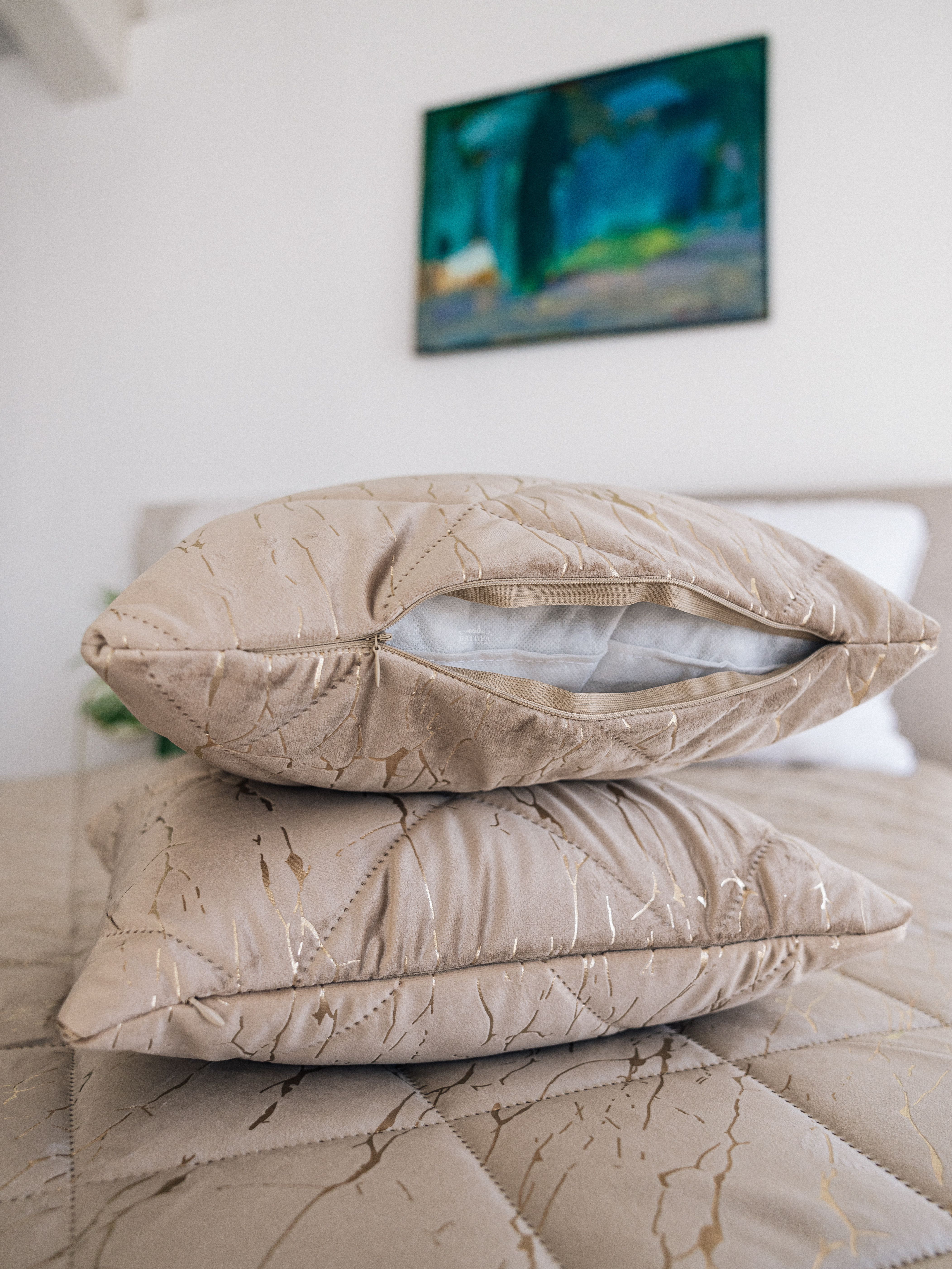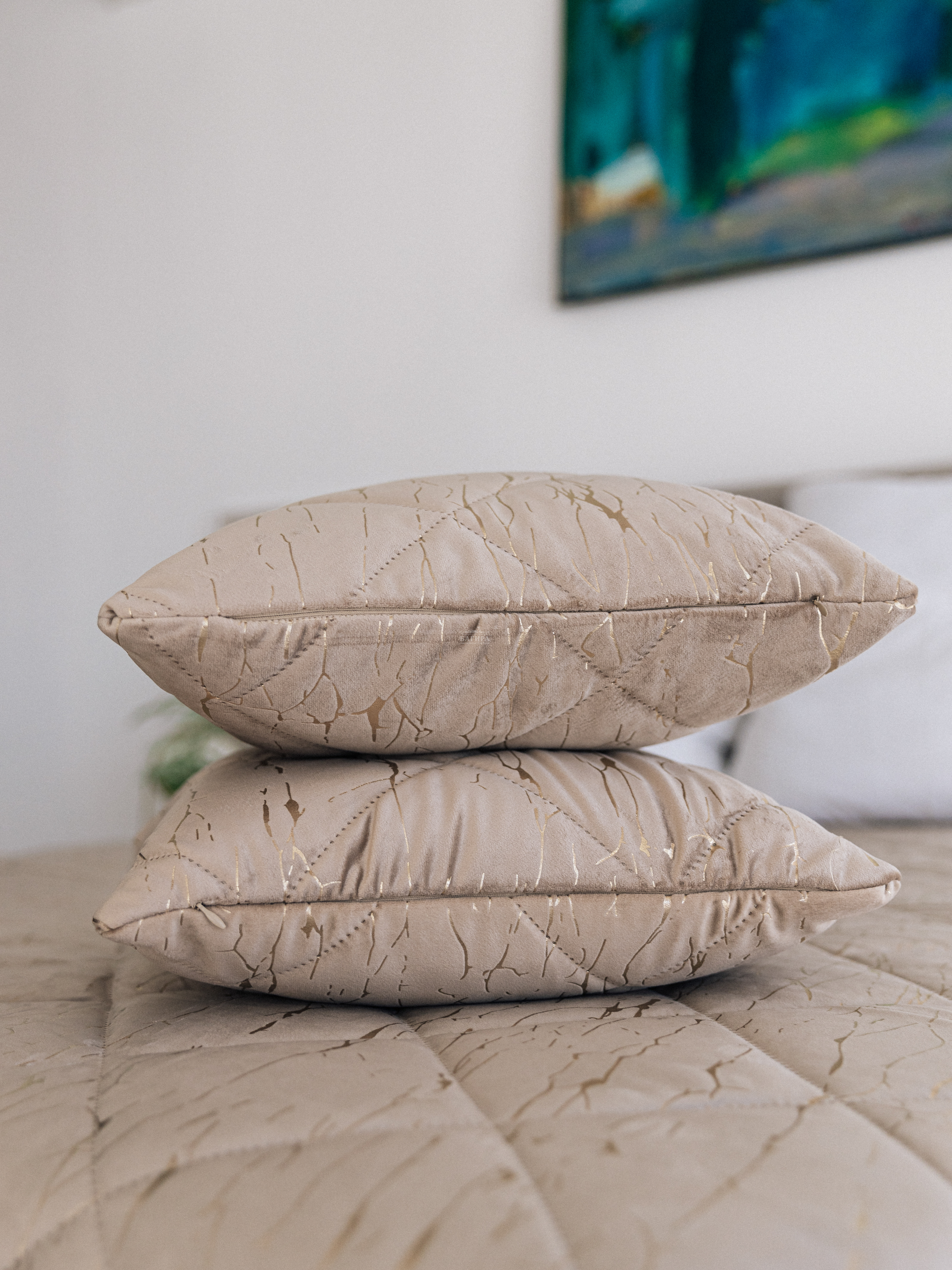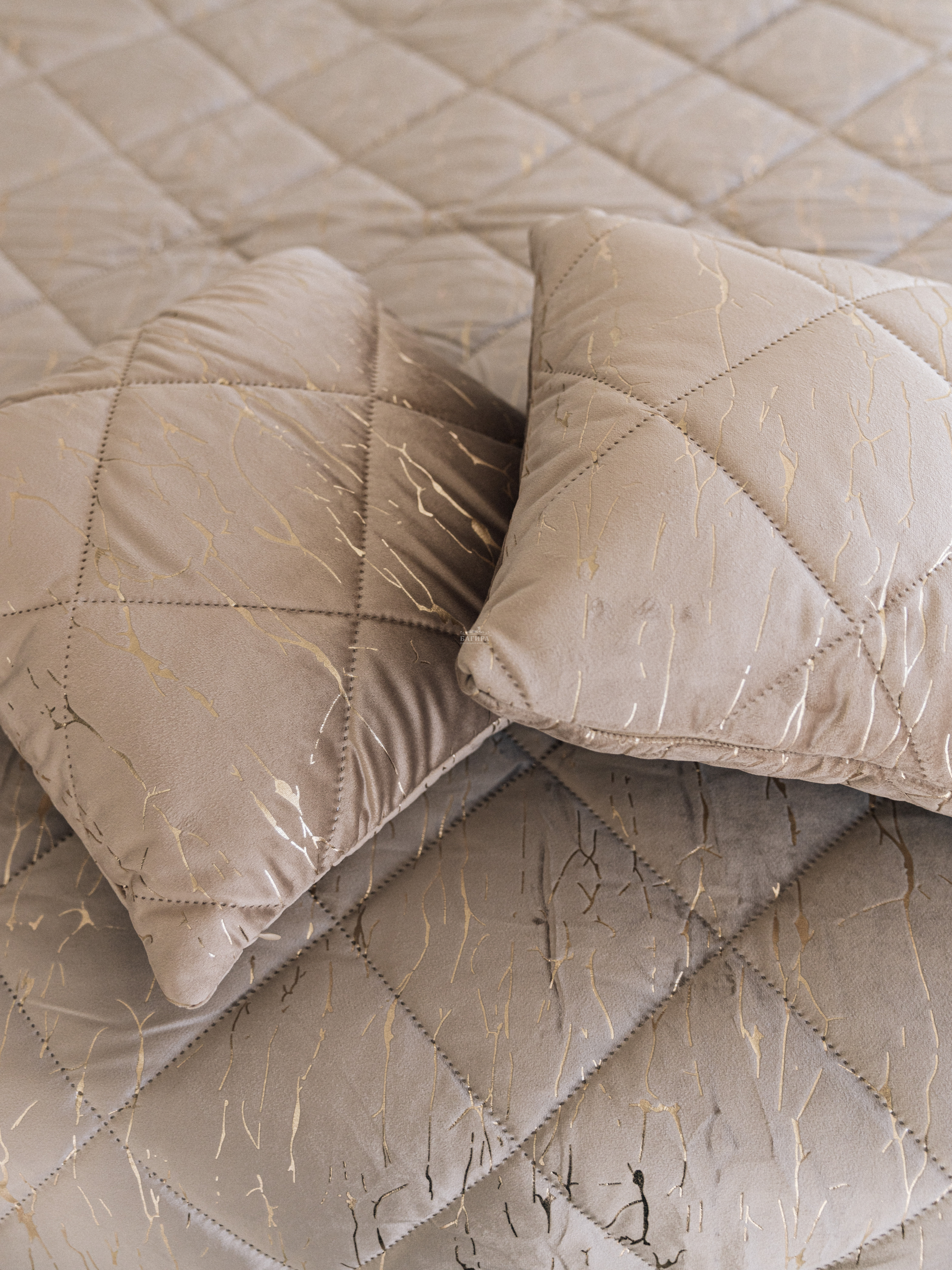 Подушка Бархат мрамор"LUXURY" Золото
