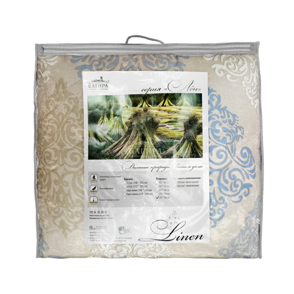 Наполнитель Лён выступает как природный кондиционер, снижая температуру в жаркое время и задерживая тепло в холод. Долговечность льняного волокна связана и с наличием антибактериальных свойств!