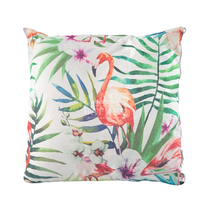 Чехол подушки выполнен из имитирующий лён ткани с печатным рисунком с одной стороны и без рисунка с другой. Плед-одеяло — из мягкой микрофибры цвета кофе с молоком с наполнителем из полиэфирного волокна. Размер в виде подушки 50х50 см, в виде одеяла — 140х200 см.