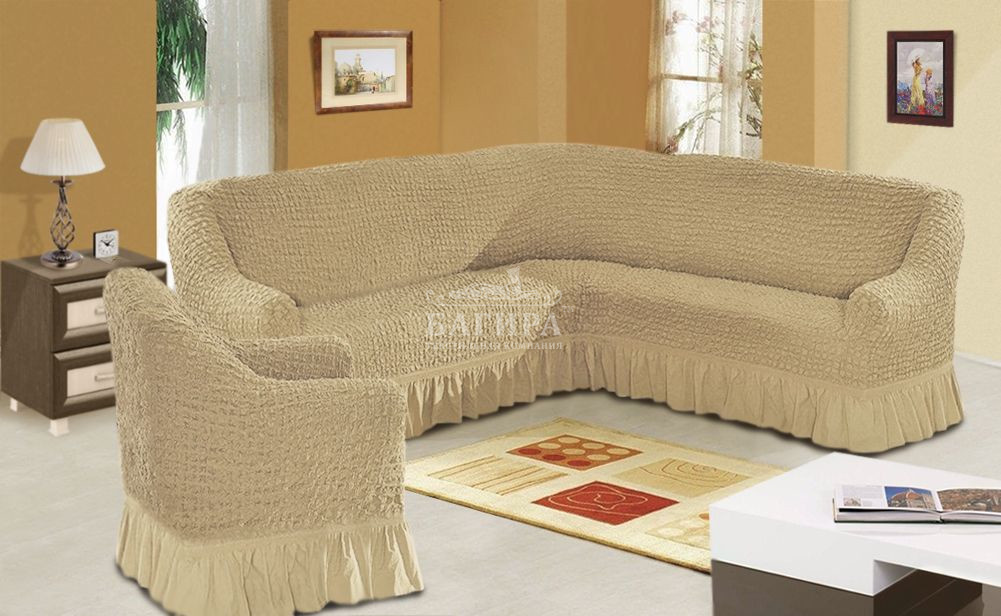 Набор чехлов на мягкую мебель "Угловой" Бежевый